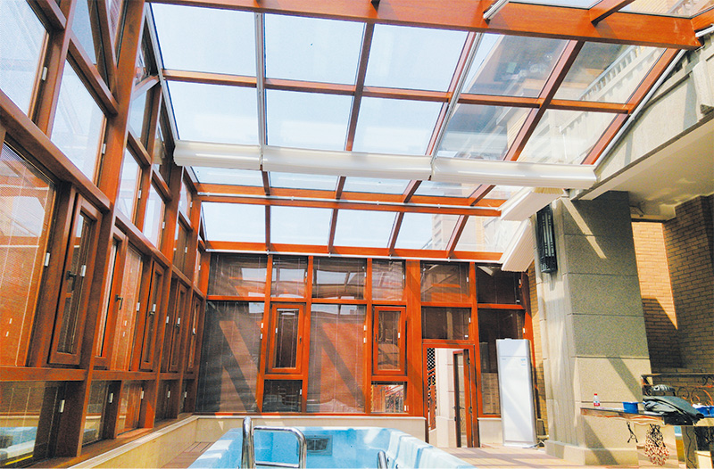 由于房間要采光通風,而且要有很好的密封效果,陽光房立面、頂部可做開啟的門窗,頂面天窗使用了世界品質丹麥威盧克斯天窗。基于陽光房的如上特點,我們在設計和建筑陽光房時,對于不同用途的陽光房在整體造型及結構方面,應視周圍環境和場地的制約而定,再做出相應的設計方案。